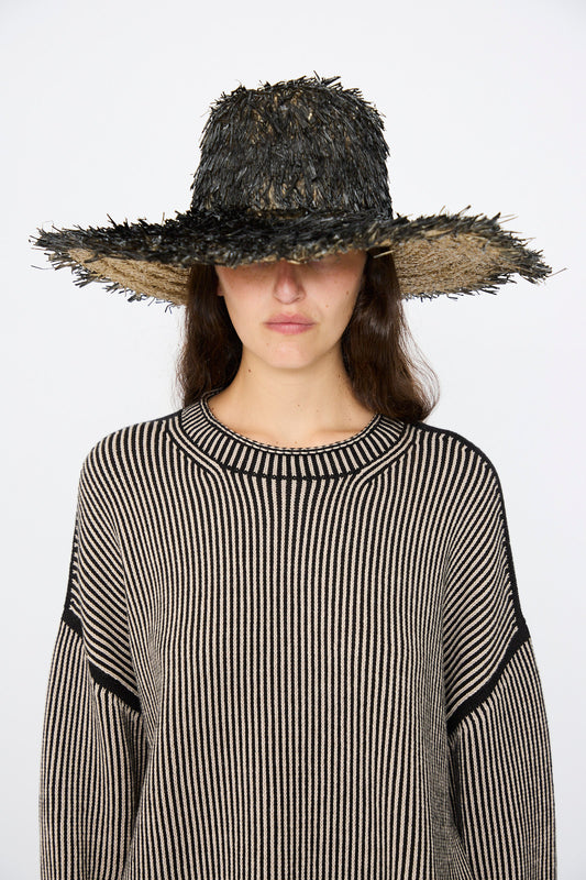 Open Straw Lai Hat in Washed Black