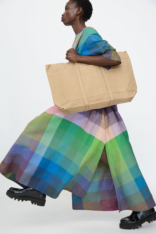 Washed Canvas 6 Pockets Large Tote in Taupe