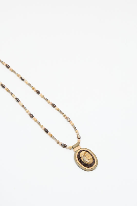 Love Bead Necklace in Brown with Picture Jasper Charm