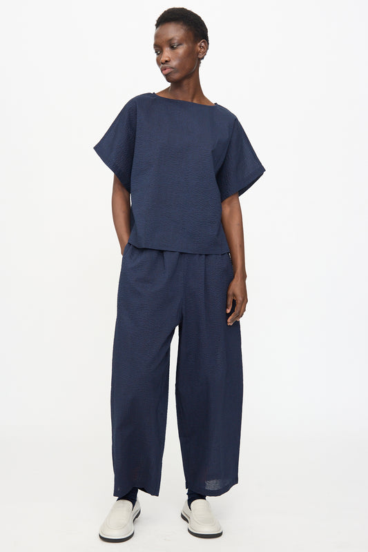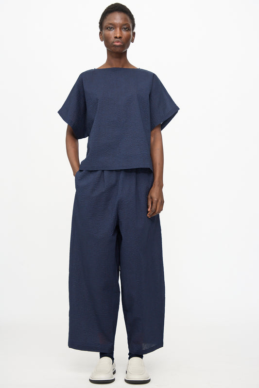 Wide Pants with Micro Wave Texture in NavyRegular price $265Regular priceUnit price per$265Sale price $265 -