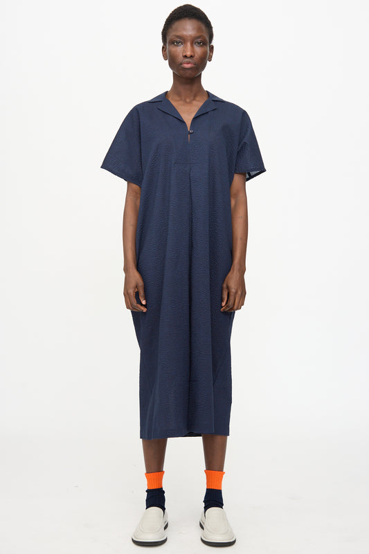 Kite Dress with Micro Wave Texture in NavyRegular price $375Regular priceUnit price per$375Sale price $375 -