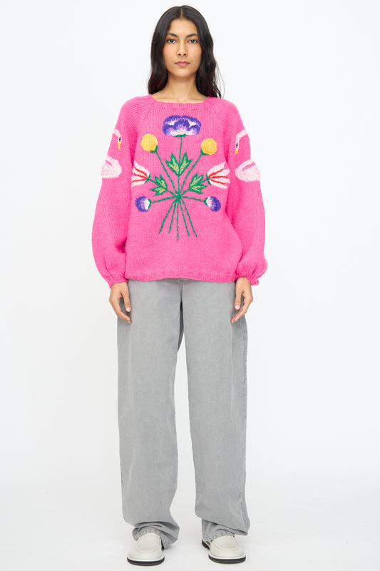 Sweater in Pink with Flowers