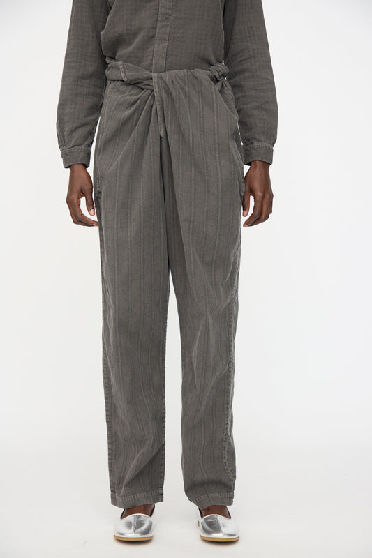 Stripe Combination Wrapped Pant in Dark Sumi