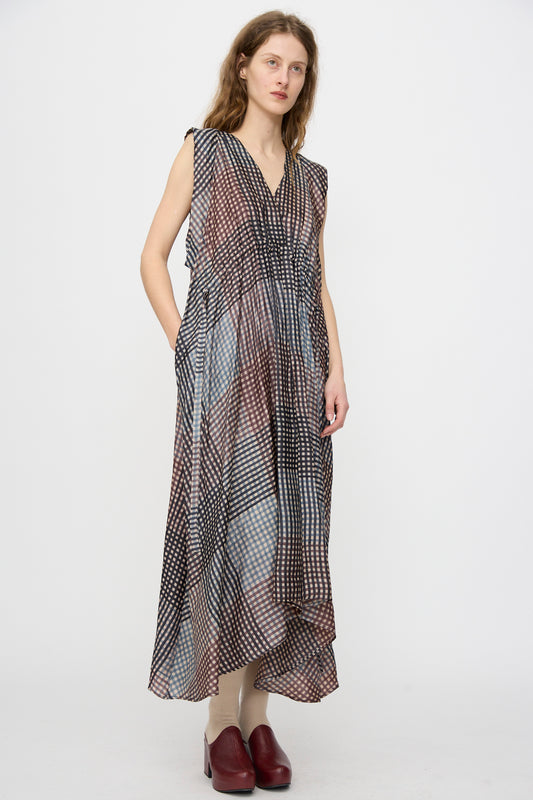 Wool Cotton Gingham Dress in Yellow and Gray