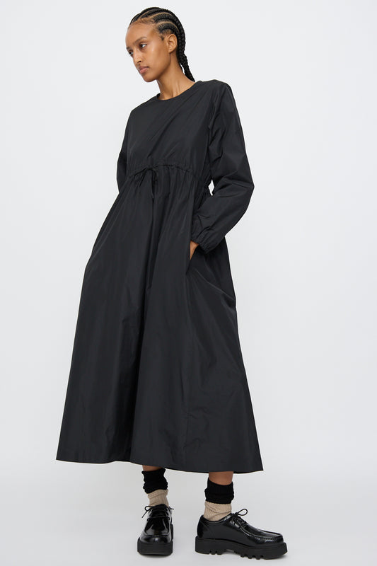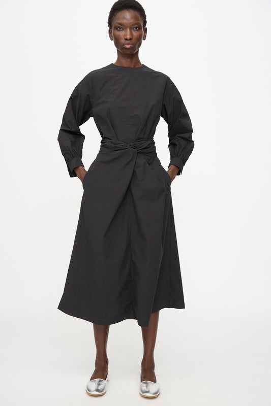 Cotton Broadcloth Wrapped Dress in Black