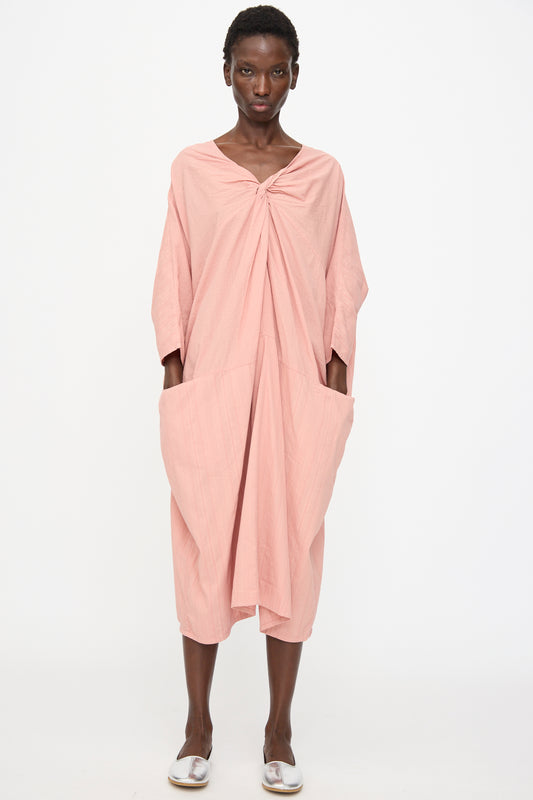 Stripe Combination Twisted Dress in Rose Crystal