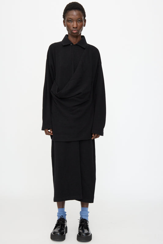 Wool Cotton Robe de Berger in Black Mix