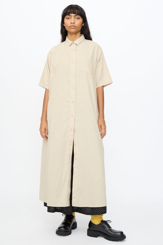 Cotton Linen Dot Dress in Natural