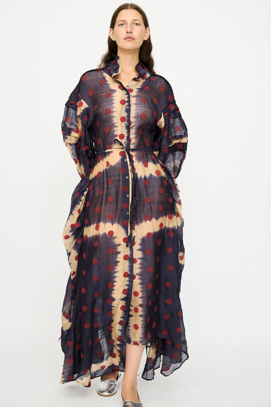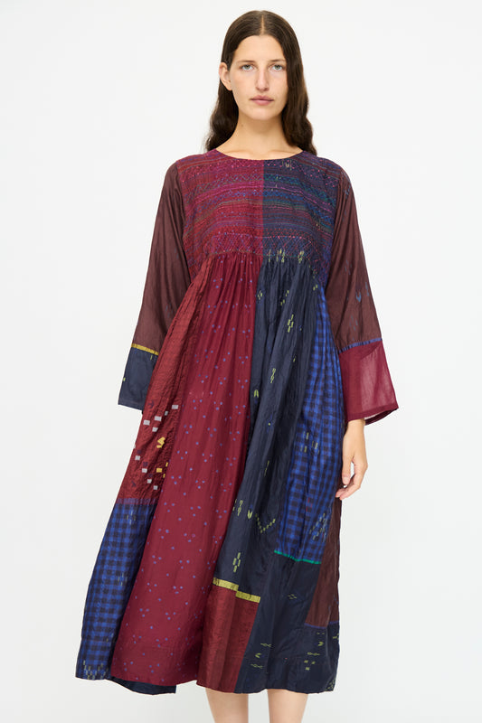 Silk Dress in Red and Blue Multi