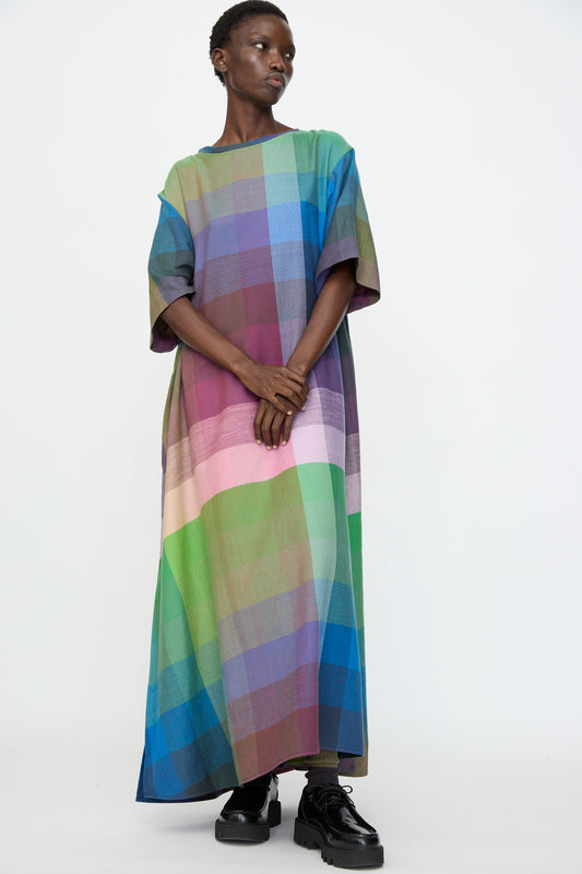 T Shirt Dress in Plaid Multi