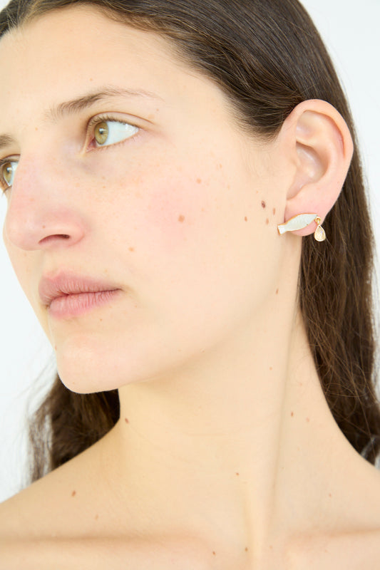 14K Crescent Charm Single Earring in Dark Tourmaline Tube