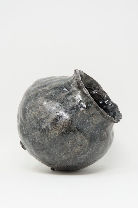 Textured Moon Vase in Black