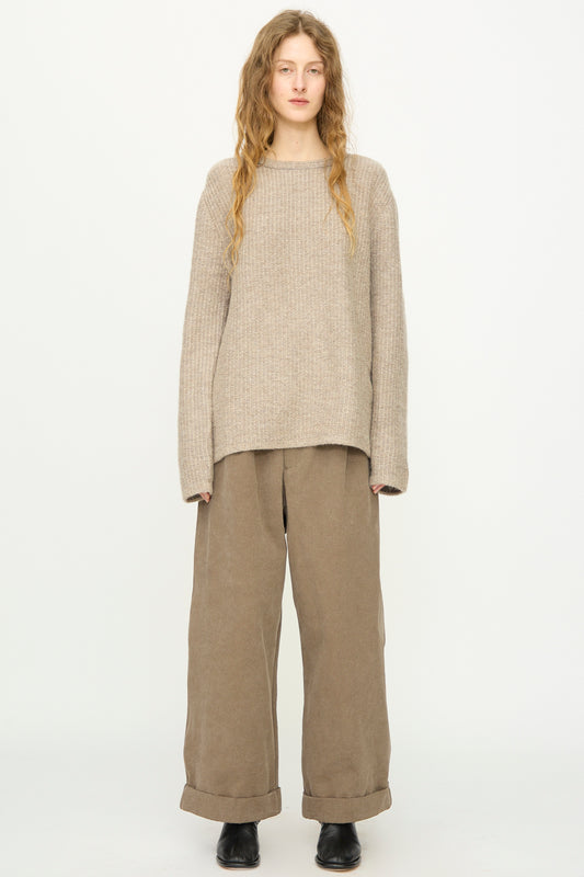 Peruvian Wool Raglan Cable Knit Vest in Camel