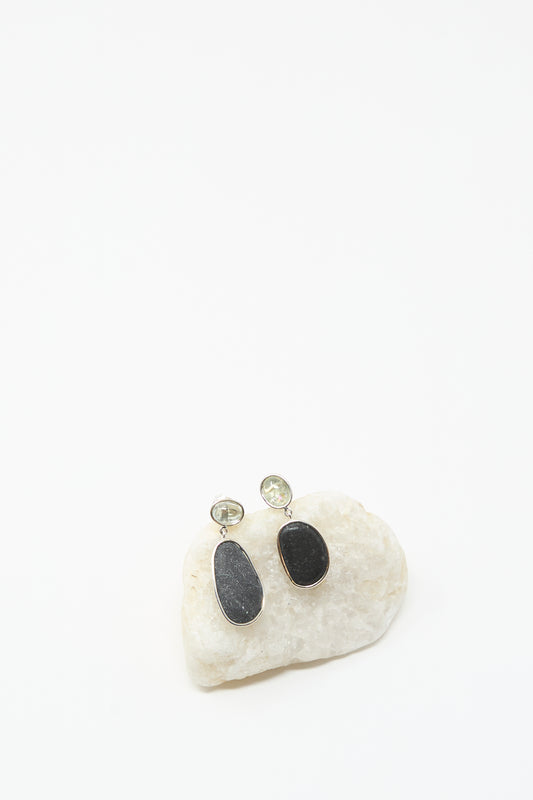 Double Stone Drop Earrings in Dark Island Stone and Tourmaline
