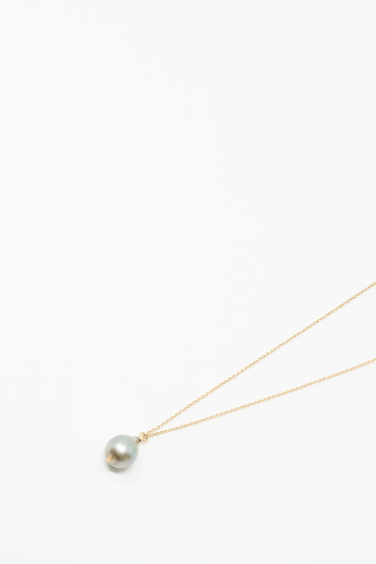 14K Tahitian Pearl Drop Necklace in Charcoal Silver