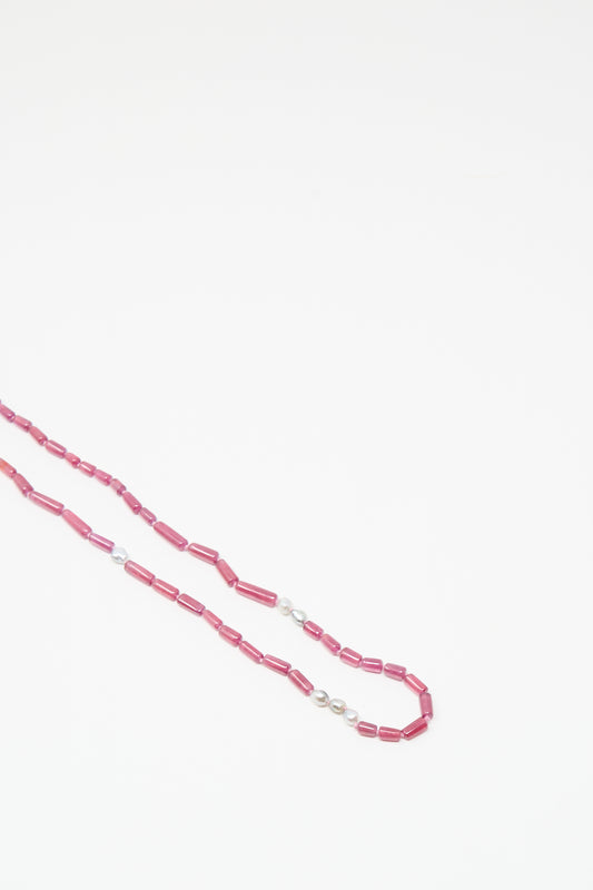 14K Stone Layering Necklace in Ruby and Keshi Pearl Stones