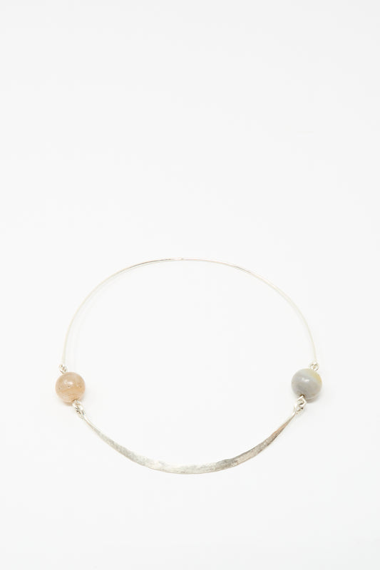 Hammered Sterling Silver Collar with Ancient Agate Trade Beads