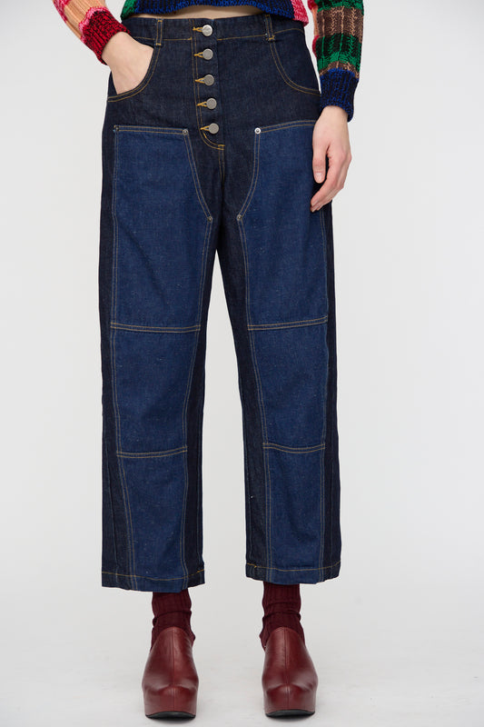 Organic Cotton Zip Up Hoodie in Blu Kid and Choco