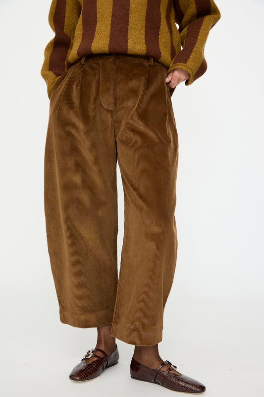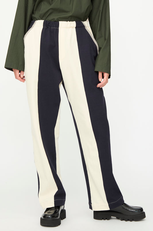 Portuguese Striped Wool Georgia Trouser in Goldfinch and Bordeaux