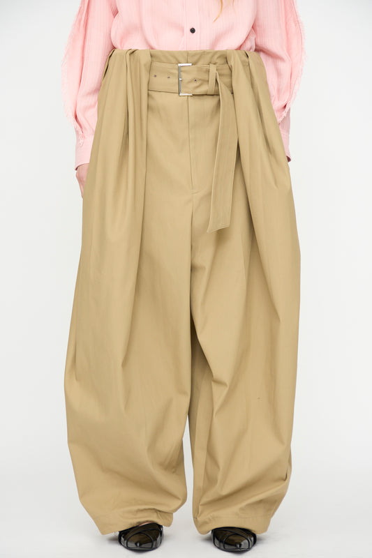 Cotton Linen Omi-Zarashi Pleated Pants in Brick
