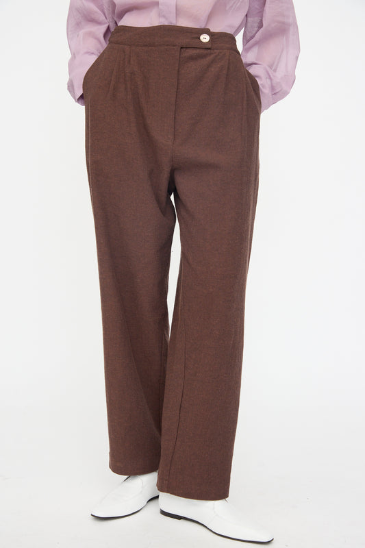 Japanese High Twisted Poplin Enya Trouser in Fog Purple