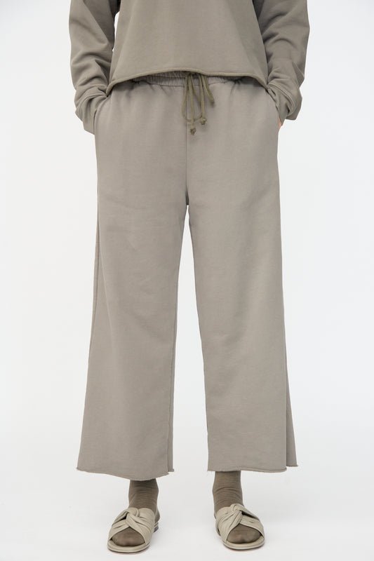 Textured Cotton Wide Pants in Pale Grey