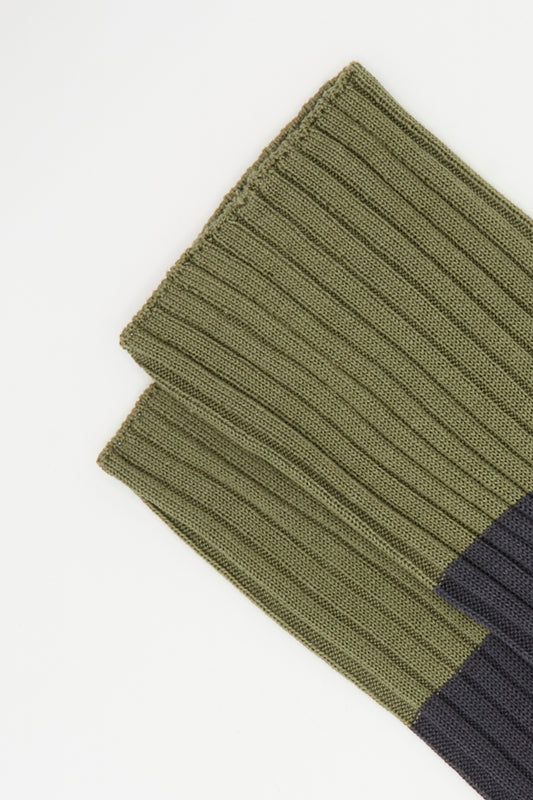 Rib Four Socks in Olive and Charcoal