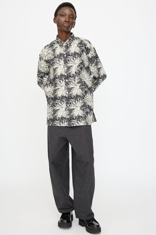 Cotton Broadcloth Open Collar Shirt in Rose Crystal